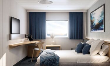 Les cabines sont aménagées pour être utilisées comme des cabines simples, doubles, triples ou quadruples. Elles sont équipées d’une table, d’une chaise, d’une armoire, d’une télévision, d’une douche et de toilettes privées. Des serviettes sont disponibles dans la cabine et les portes peuvent être fermées à clé. Les cabines sont situées sur les ponts 3 et 4.